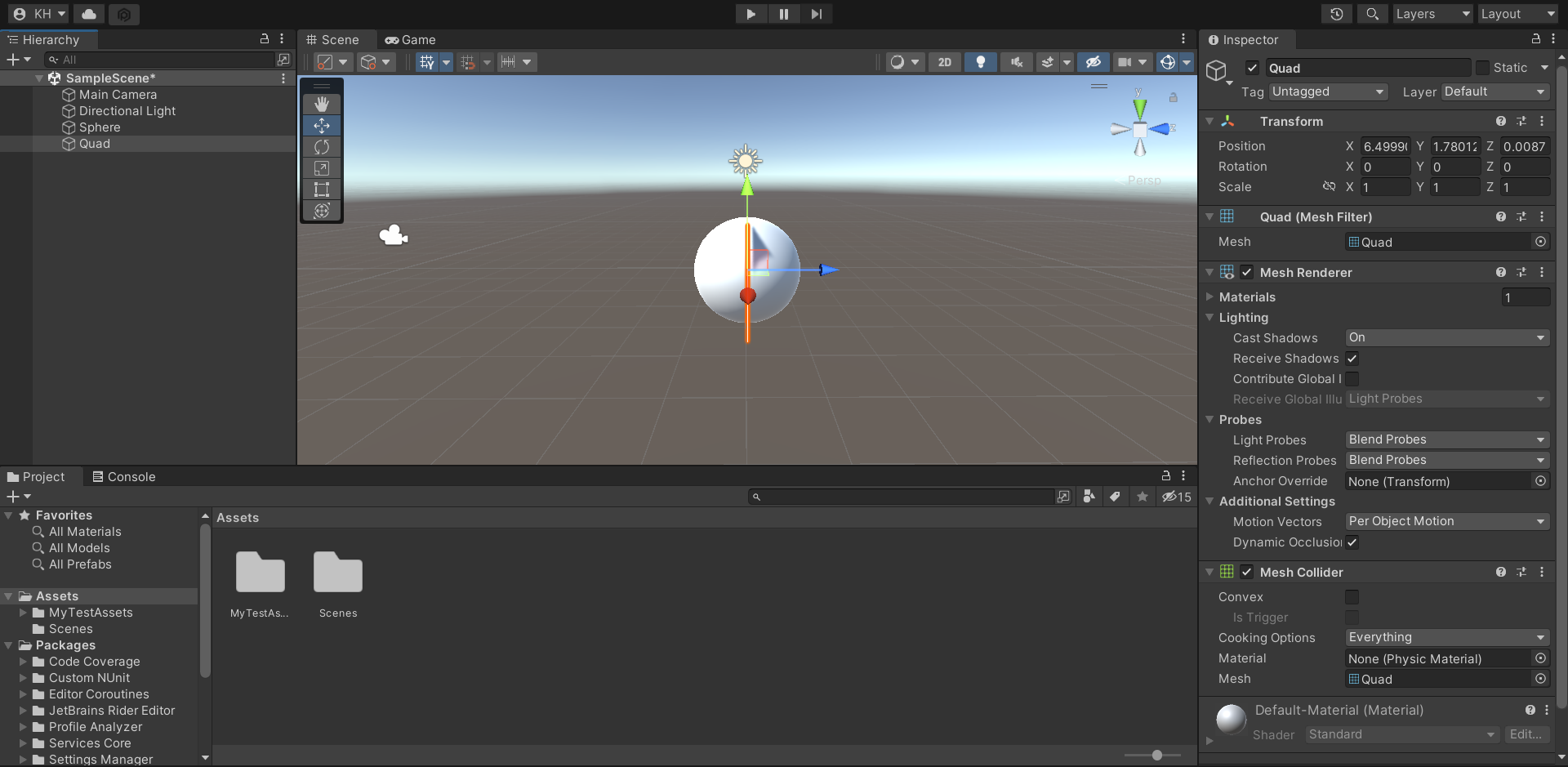 Project 창에서 Assets 폴더에 MyTestAssets 폴더를 생성하고