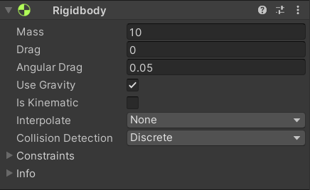 가령 10으로 설정되어 있는 질량값을 500으로 늘린다면 같은 힘이 주어졌을 때의 물체의 가속력이 낮아 오브젝트의 움직임이 비교적 굼뜨게 된다.