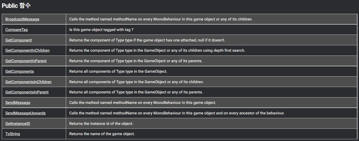 MonoBehaviour클래스에 구체적으로 어떠한 기능들이 몇 개까지 있는지는 공식 메뉴얼에 자세히 나와 있으니 참조할 수 있다. (대략 기초적인 상당수의 뼈대를 MonoBehaviour가 제공하고 있다고 이해하면 편하다.)