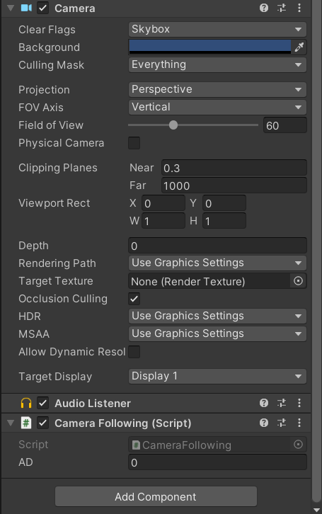 앞서 카메라가 헬기(플레이어)를 따라가도록 하는 스크립트를 제거해 보았다가